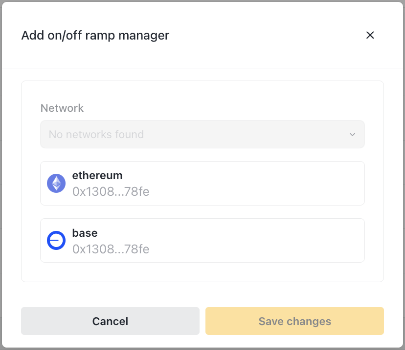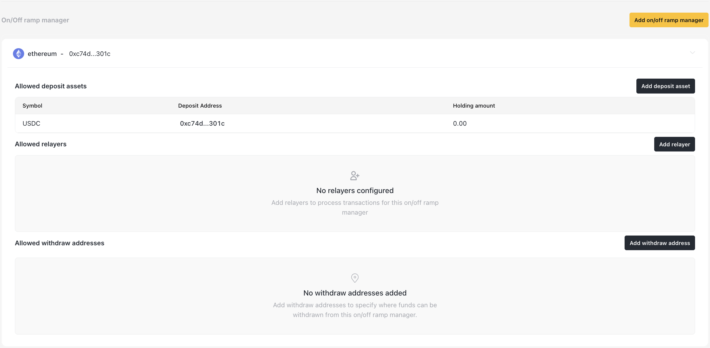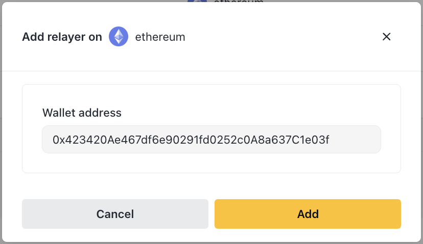 • Relayer addresses - To pre-configured off-ramp receivers