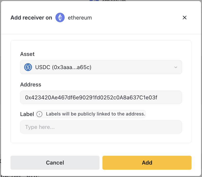 2. Select a pre-configured receiver (e.g., "Circle Off-ramp")